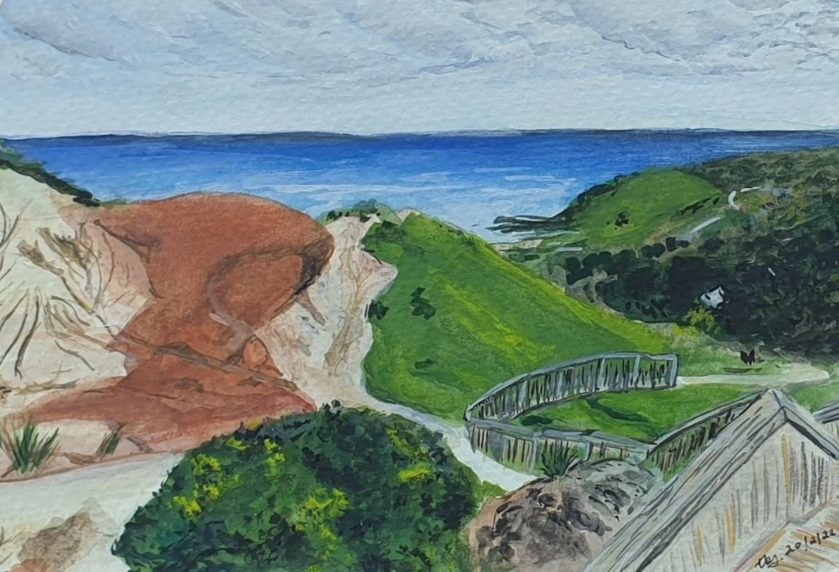 Landscapes, some sketched on-location, some created from photos later on, but all hoping to capture the feeling, and something special about the place: interesting striations in the mountains, the morning light at a campground, the feeling of being surrounded by green in a jungle, the contrasts of the trees against their backdrop.
